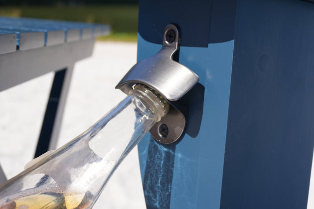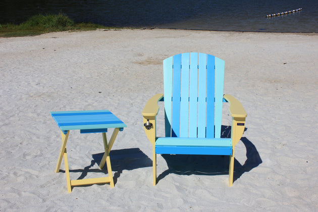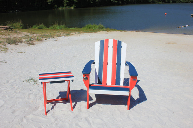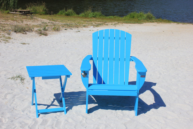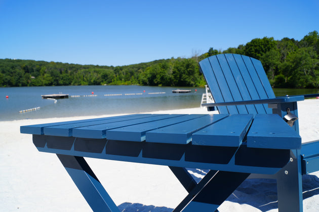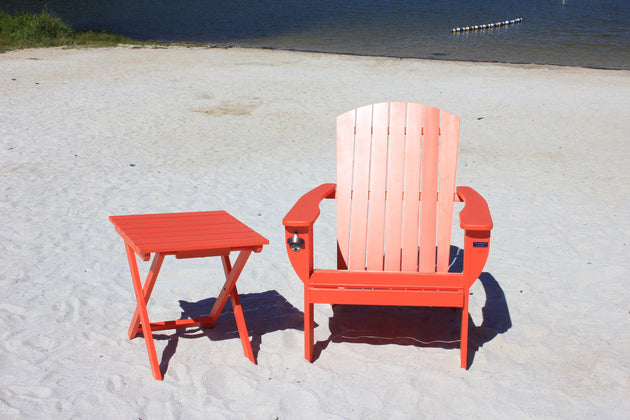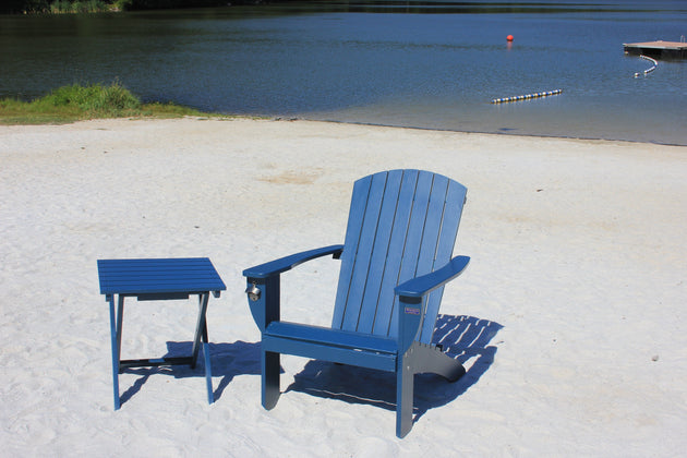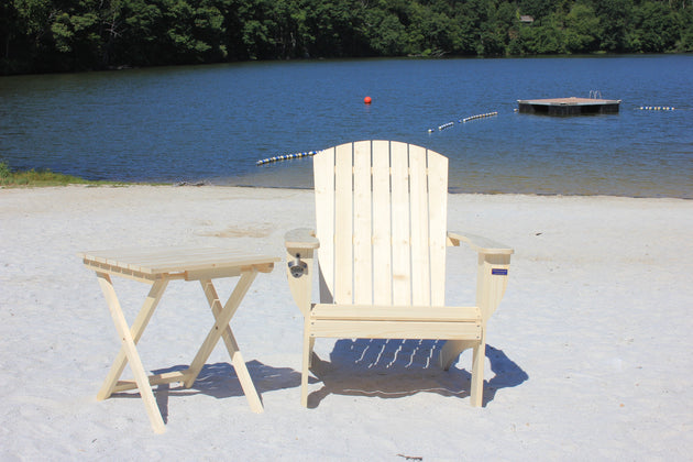 Riverstone Solid Cedar Adirondack Extra Wide Chair with build in bottle opener & matching folding table